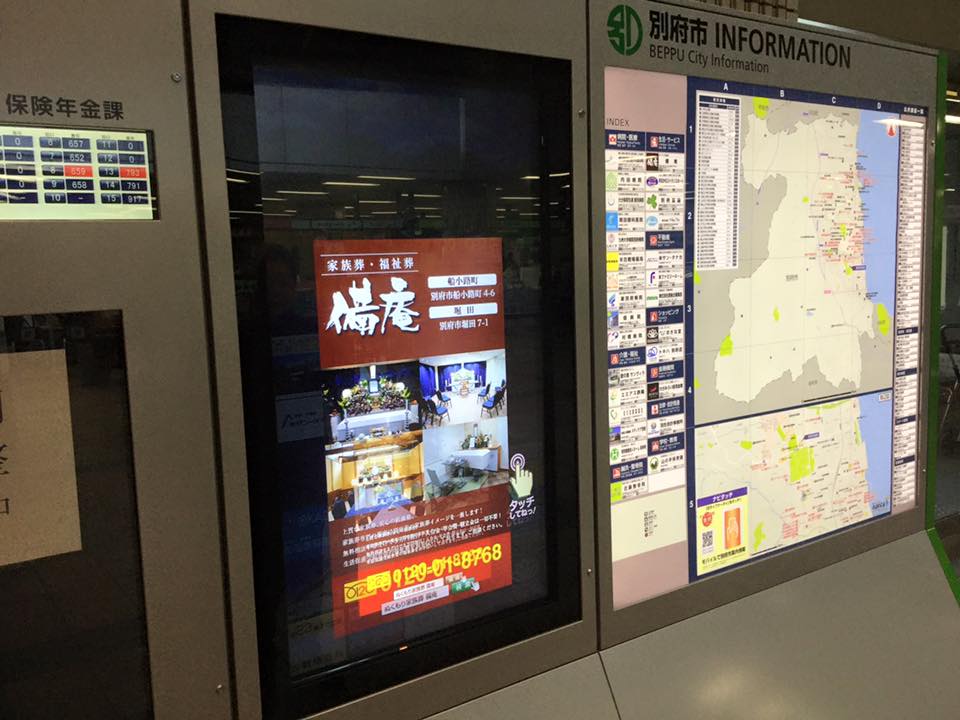 3月1日から別府市役所の庁舎内にデジタル案内板が設置されました。